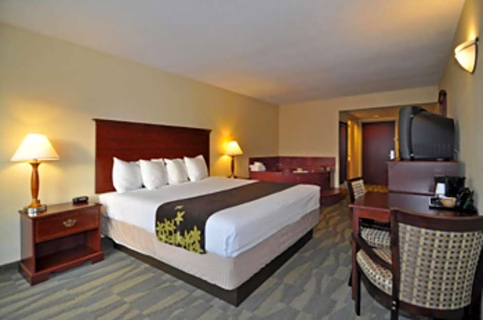 This room features a microwave, refrigerator, spa bath and tea/coffee maker.