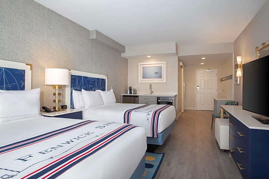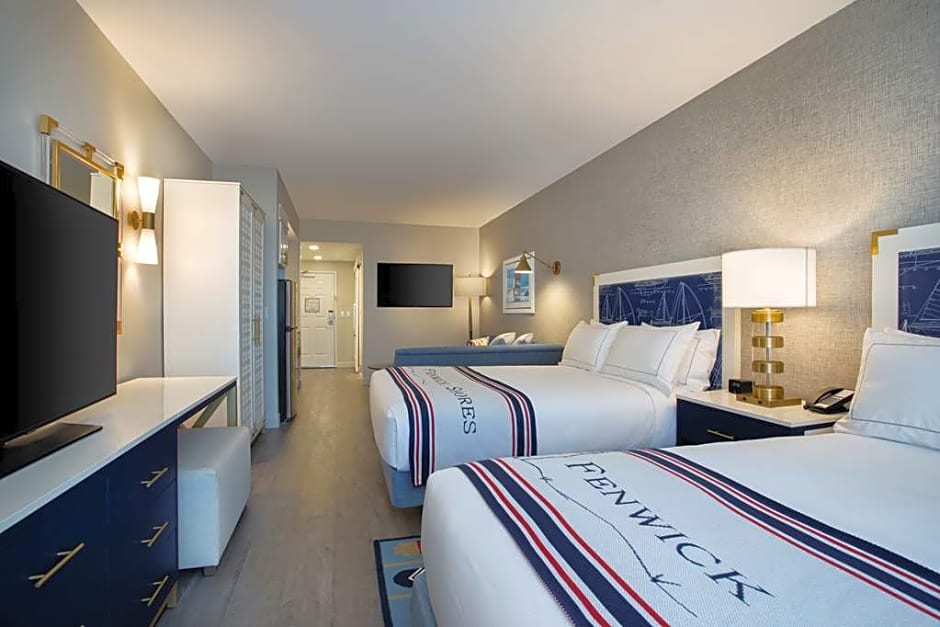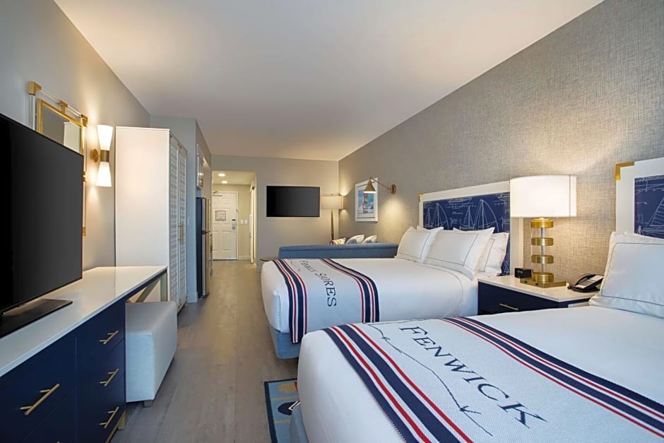 At Fenwick Shores, Tapestry Collection by Hilton, there are several types of rooms available. These include Queen Rooms with Two Queen Beds, King Rooms with Sofa Beds, and Premium Queen Rooms with Two Queen Beds. All rooms are non-smoking and have a room size of 301 sqft. The occupancy ranges from 4 adults and 3 children to 6 adults and 4 children.