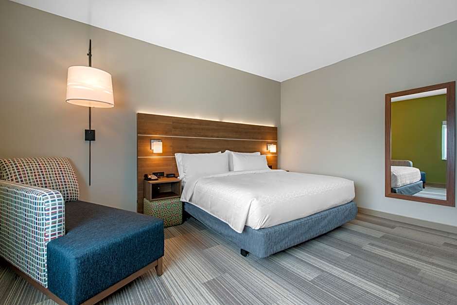The Holiday Inn Express & Suites Alachua - Gainesville Area offers a variety of room types. These include King Rooms, Leisure King Rooms, Standard Rooms with Twin beds, Queen Rooms with Two Queen Beds, King Suites, and Queen Suites. All rooms are non-smoking and have a room size of 377 sqft, except for the Queen Suite which is 420 sqft. The rooms can accommodate 2 or 4 adults, with some able to accommodate extra children.