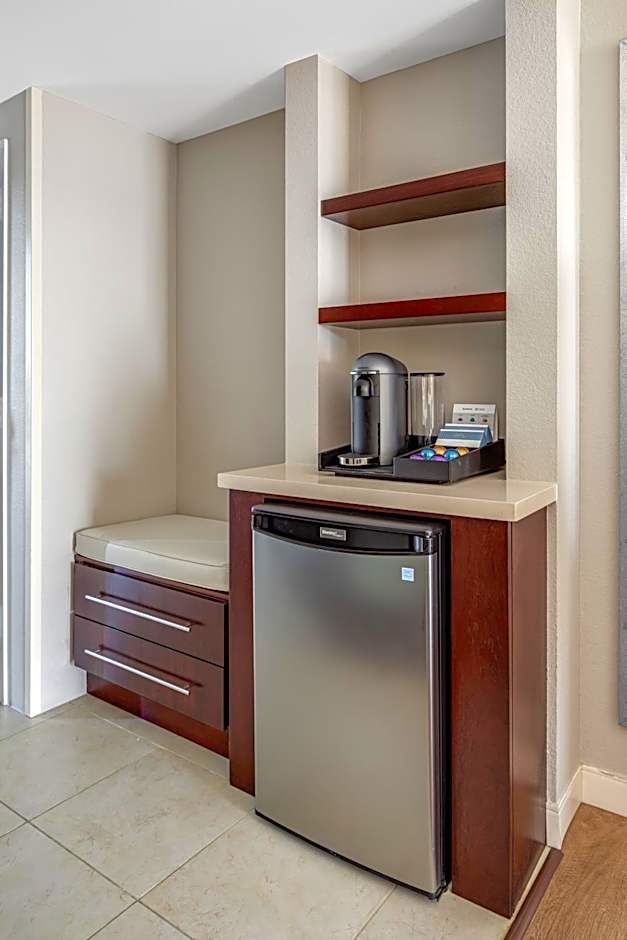 This bright, airy and thoughtfully appointed modern design features one king sized bed, mini refrigerator, coffee and tea maker.
