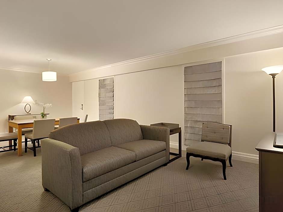 Two 32-inch HDTVs, sofa bed, armchair, refrigerator, microwave, WiFi Experience the home comfort found in this two-room suite, featuring a spacious living room and separate bedroom with one king-sized bed. This suite is furnished with: A sofa bed, armchair, activity table and ergonomic chairs Two 32-inch HDTVs and alarm clock radio with MP3 connection Refrigerator and microwave oven The bathroom features a granite vanity and a tub with shower, as well as a range of refreshing amenities. Suite has WiFi, for which a nominal fee may be charged.