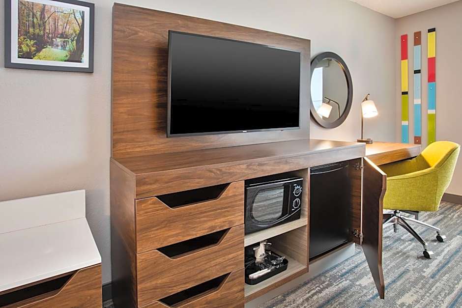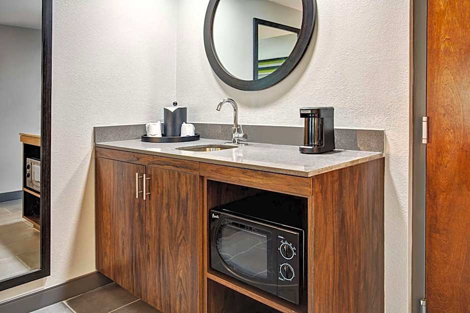This spacious studio suite is furnished with one king bed and a sofa bed. A small refrigerator, microwave, and coffee-making facilities are provided.