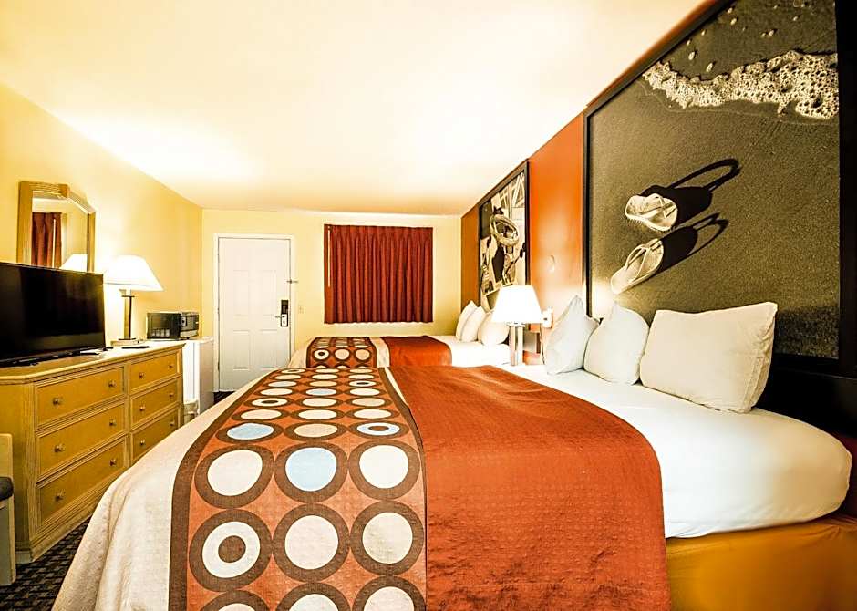 The Super 8 by Wyndham Chipley offers a variety of room types including Queen Rooms with Two Queen Beds (both smoking and non-smoking options available), Double Rooms with Two Double Beds (both smoking and non-smoking options available, with one room being mobility accessible), and King Rooms (both smoking and non-smoking options available). All rooms have a room size of 301 sqft and can accommodate a range of occupants, with some rooms accommodating up to 4 adults and 3 children. Bed sizes vary between Queen and King size, depending on the room type.