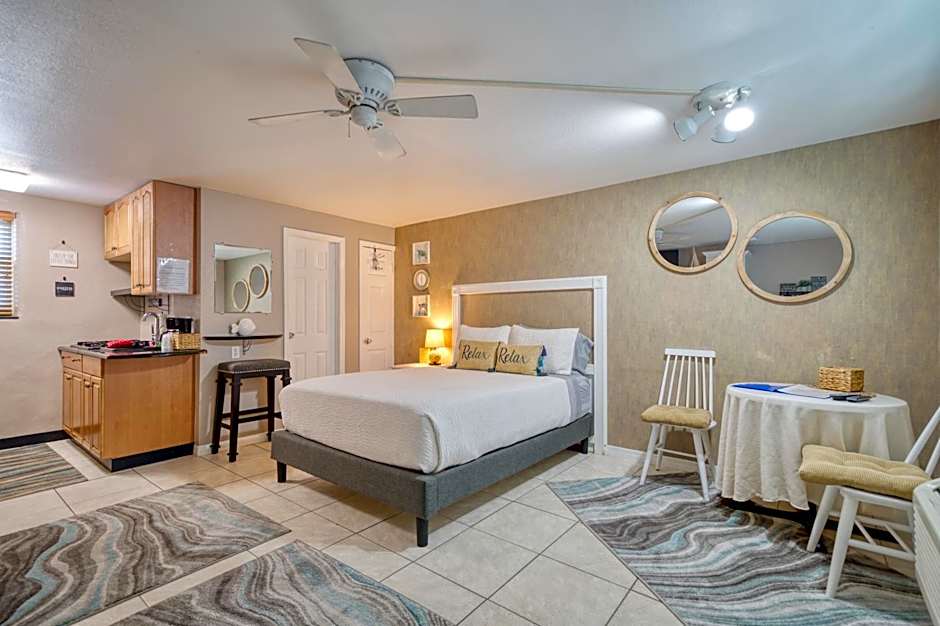 With three different room types available, Camelot Beach Suites caters to a variety of needs and preferences. Whether you're traveling alone, with a partner, or with a family, you'll find a suitable accommodation option. From the cozy One Queen Bed Studio to the spacious Deluxe King Studio and the comfortable Two Double Bed Studio, there's a room to fit every party size. Each room is designed with your utmost comfort in mind, featuring amenities such as an air-conditioning, a private entrance, a kitchenette, and a private bathroom. With these well-appointed rooms, you can relax and recharge after a day of exploring the beautiful city of Clearwater.