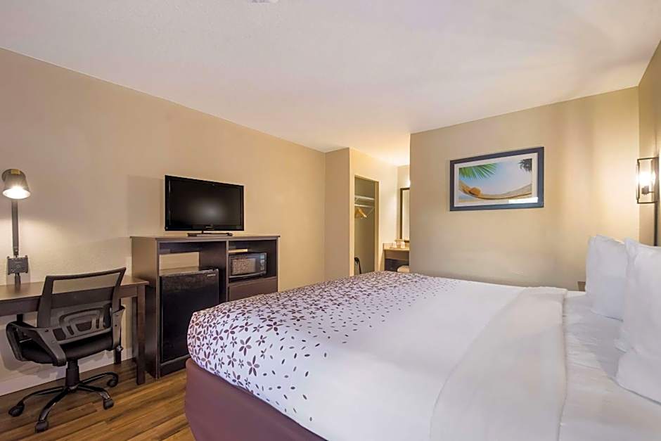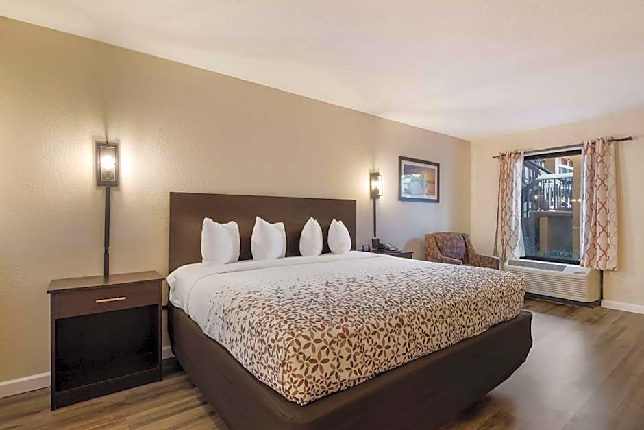 The SureStay Hotel by Best Western St Pete Clearwater Airport offers a King Room with a double occupancy, non-smoking option. The room has a bed size of King and measures 280 sqft. There is also a King Room with Roll-In Shower option available for guests with disabilities. Another room option is the Queen Room with Two Queen Beds, which has quadruple occupancy and does not allow smoking.