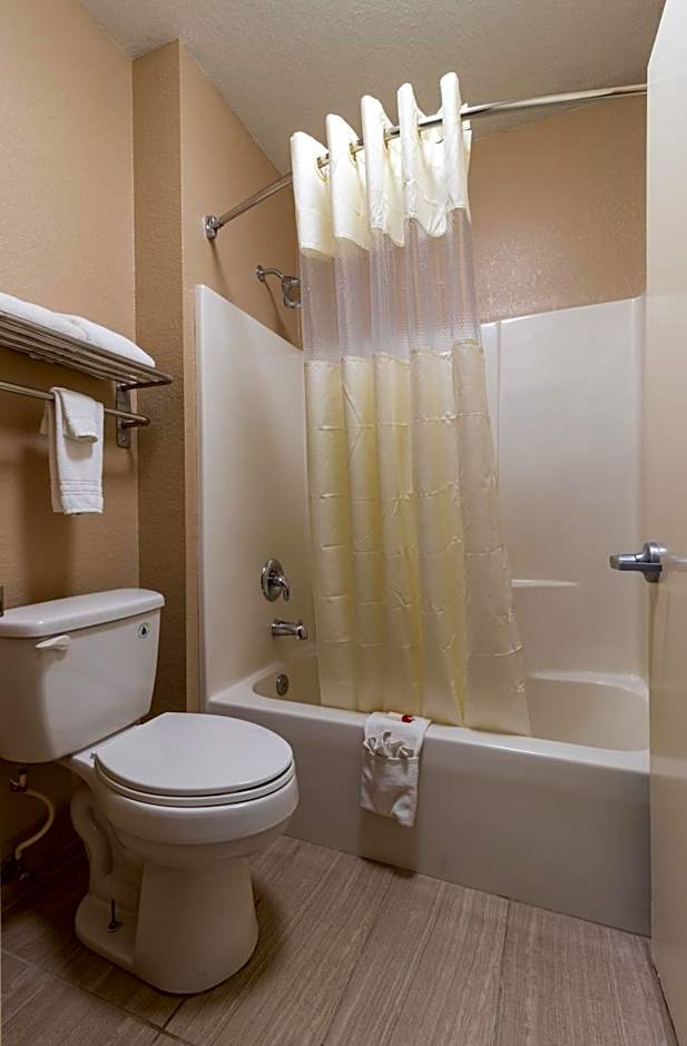 Free WiFi, free continental breakfast, bathtub/shower combination, bathtub grab bars, adjustable hand-held shower wand, bathroom is wheelchair accessible, portable bathtub seat, raised toilet seat with grab bars, bedroom is wheelchair accessible, closet rods at wheelchair height, mini-refrigerator, microwave, air conditioning, coffee/tea maker, hair dryer, HDTV, bathroom amenities, alarm clock, desk, iron, ironing board