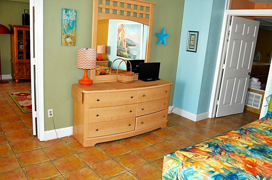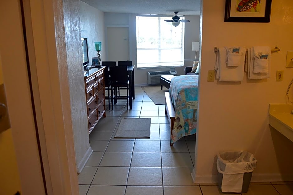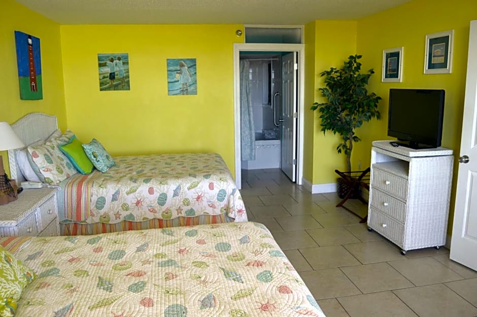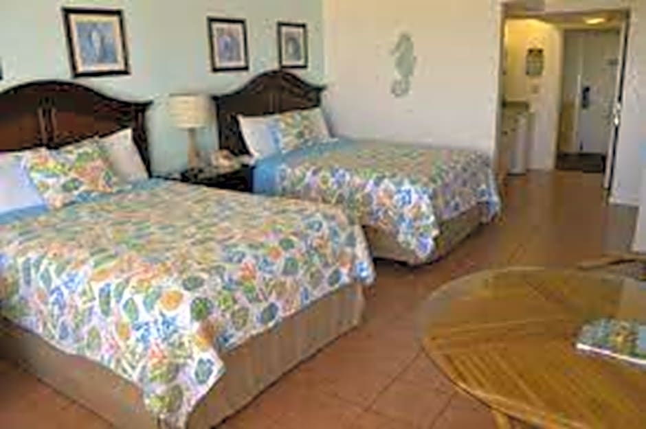 On-site dining centers around The Oasis Tiki Bar and Grill, offering American fare in a family-friendly setting. The restaurant enhances the beachfront experience, complementing the ocean views and balconies that invite the sea breeze during meals.