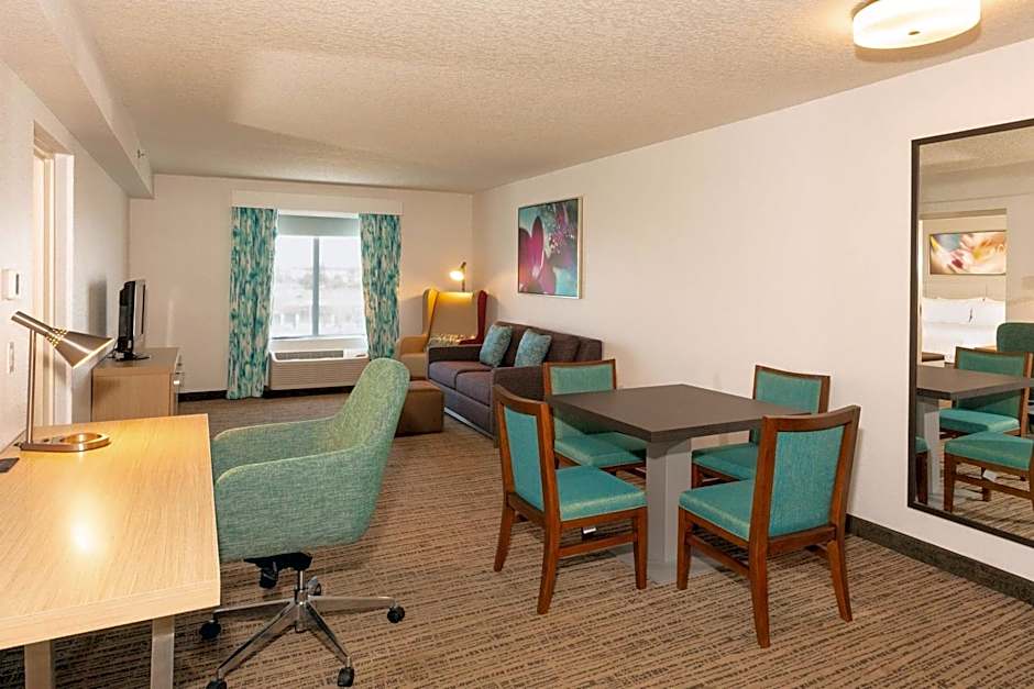 This suite features a microwave, small refrigerator, Keurig® coffee machine, one Sofa, desk, and 2 TVS.