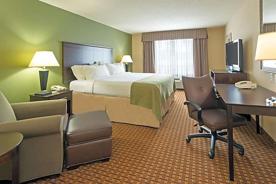 The Holiday Inn Daytona Beach LPGA Boulevard offers a variety of rooms including Standard Rooms with TwinDouble beds, Queen Rooms with Two Queen Beds, King Suites, and Executive Suites. All rooms are non-smoking and range in size from 301 sqft to 355 sqft. The rooms can accommodate between 2 and 4 adults, with some rooms also accommodating up to 3 children. The bed sizes vary, with options including Double beds, Queen size beds, and King size beds, with some suites also featuring a sofa bed.