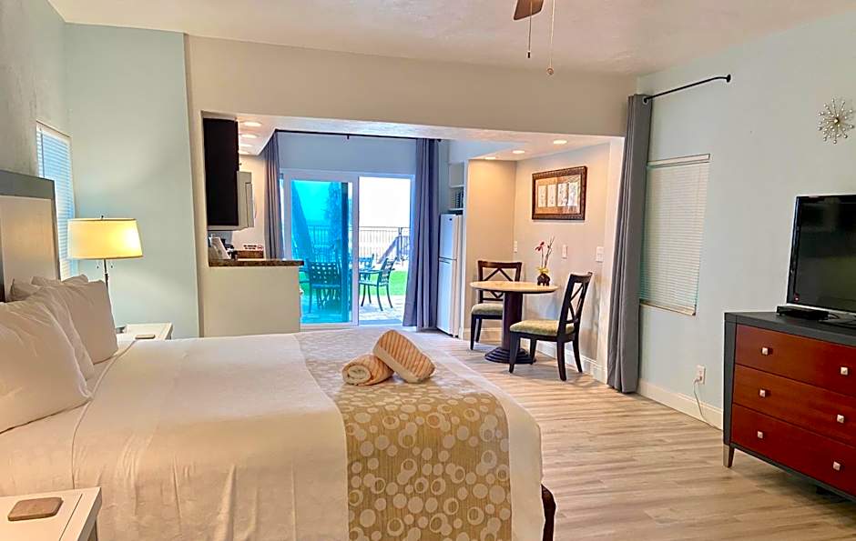 We loved this hotel so much. We wanted something more charming then a generic hotel and this place was perfect. The room we had was very beautiful, equipped with a kitchen to cook our meals and had an ocean view. Right outside the hotel we saw multipe dolphins swimming very close to shore which was so magical. It was an amazing location 5 min drive from the boardwalk/center and close to restaurants, grocery stores and more. If we are ever in daytona again we Will definitely be back to this special hotel.