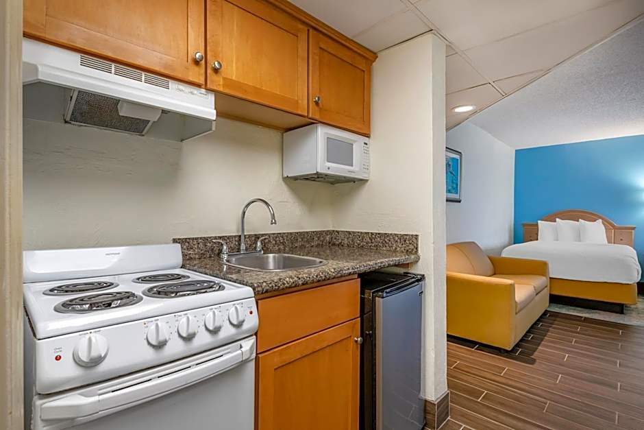 On-site amenities keep days easy and fun: a heated indoor pool and a heated outdoor pool invite a dip no matter the weather, while Poolside Café serves American fare in a family-friendly setting. Free wifi and a streaming service option let downtime feel effortless, and a free business center plus a sun deck, terrace, tour desk, private entrance, and elevator access to upper floors add convenience. Practical touches include non-smoking rooms, balconies, bathtubs, and free toiletries, along with kitchen facilities featuring a kitchenette and kitchenware. On-site parking is available for an extra charge, and extra options like beach umbrellas and snorkeling are also available for an additional fee.