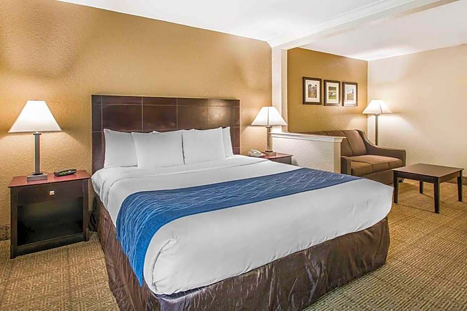 At Comfort Inn & Suites DeLand - near University, the available room types include King Rooms (accessible and non-smoking options), King Suites, Double Rooms with two double beds, and Queen Suites with two queen beds and a sofa bed. Smoking is not allowed in any of the rooms. The rooms accommodate between 2 to 6 adults and 1 to 4 children, with bed sizes ranging from one king or queen to multiple doubles. Sizes for the rooms listed are around 280 to 301 sqft.