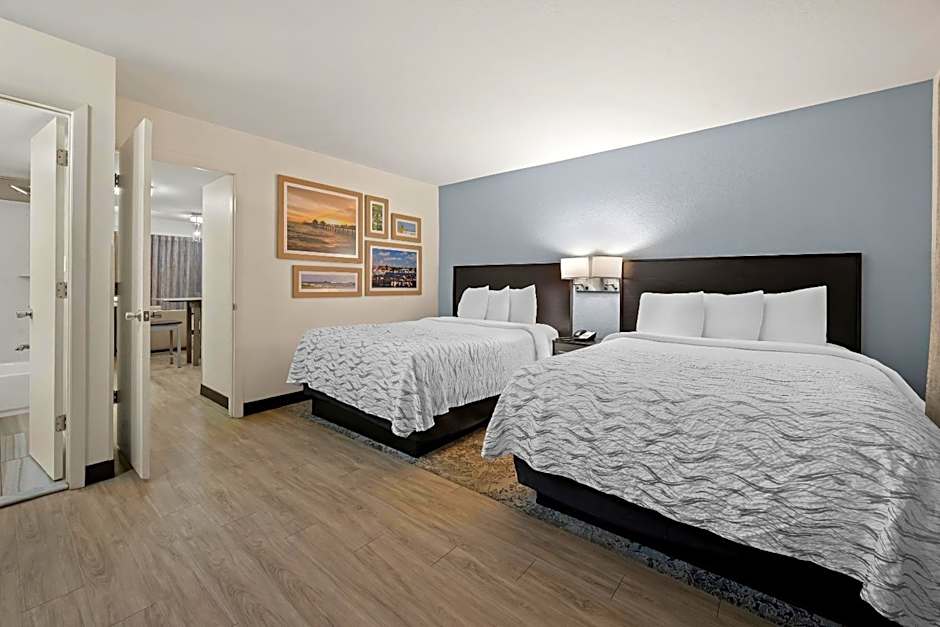 Suite 2 Queen Beds w/Kitchen Pool Side Smoke-Free includes 2 queen-size beds 150-154 width plus living room, desk, and cable tv.