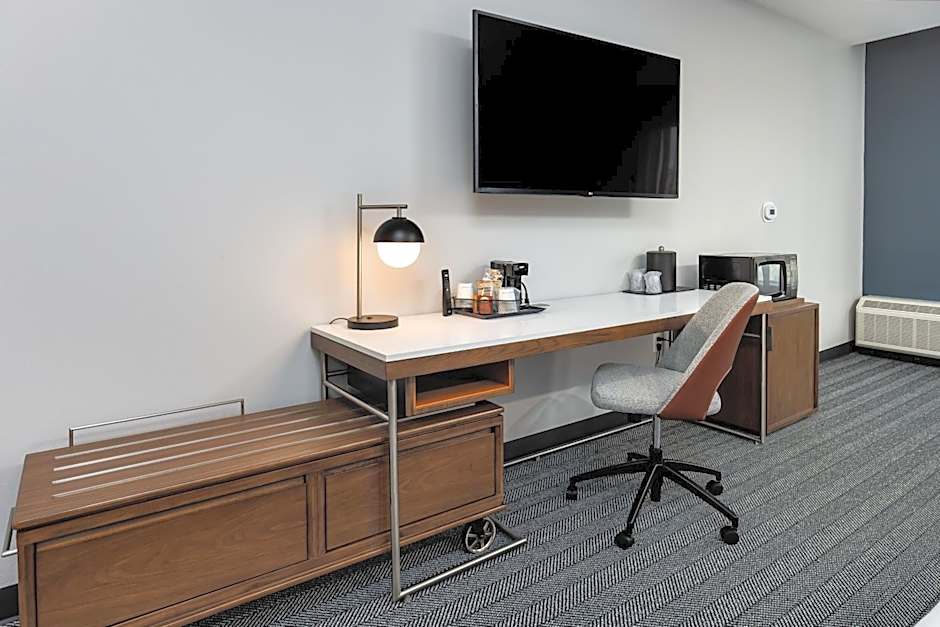 The Courtyard by Marriott Pensacola West offers Double Queen Rooms and King Guest Rooms with Sofa Beds. These rooms are non-smoking and can accommodate up to 4 adults and 3 children. The Double Queen Rooms feature 2 Queen size beds and have a room size of 388 sqft, while the King Guest Rooms with Sofa Beds have a King size bed and a sofa bed, with a slightly smaller room size of 323 sqft.