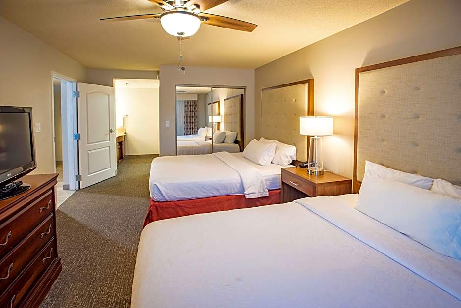 This mobility accessible non-smoking two bedroom suite features one king-sized and two queen-sized beds and an accessible bathtub. The kitchen, built to lower scale, is fully equipped down to utensils, and includes a full-sized refrigerator, microwave, dishwasher and twin burner stove. The two full-sized bedrooms each offer closet space and HDTV. Relax in a separate living area with a full-sized sofa bed, side chair and HDTV. This suite keeps you connected with complimentary high-speed wireless internet access, alarm clock featuring a back-up alarm system, MP3 player capabilities and pre-set local radio stations. Any corresponding photo may not reflect the specific accessible room type or room feature.