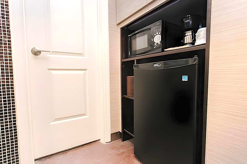 In the kitchenette, guests will find a mini-fridge, kitchenware, a microwave and an a coffee maker. This double room features air conditioning, wardrobe, and safety deposit box, as well as a private bathroom boasting a bath and a shower. The unit has 1 king-size bed.