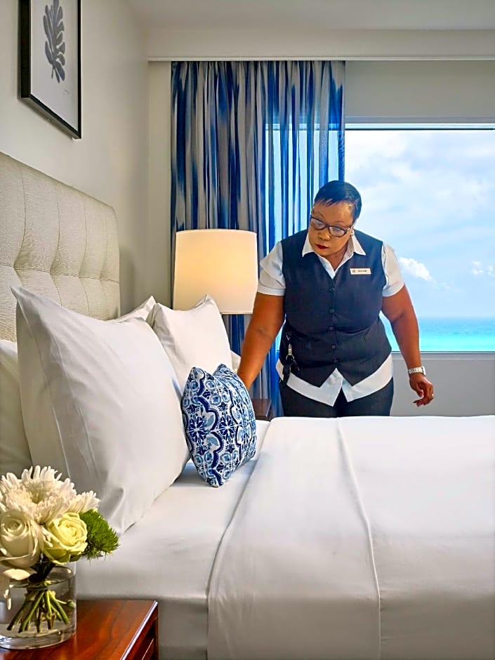 Deluxe Ocean View is 301 square feet and includes either a king-size bed 150-183 width or 2 double beds 131-150 width and is Wheelchair-accessible.