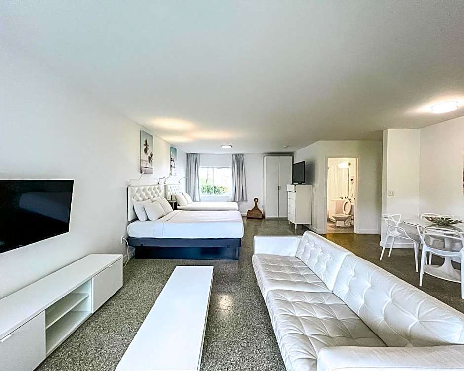 A broad mix of room types caters to different group sizes, including Studio (Queen or King), Deluxe Studio (Queen or King), and 1 Bedroom options, plus various suites and larger layouts like Villas and Bungalows. All accommodations are non-smoking. The kitchen setup features kitchenware and a kitchenette, and free toiletries are provided to keep stays comfortable. Beach days are easy with beach chairs/loungers available for use by the water.