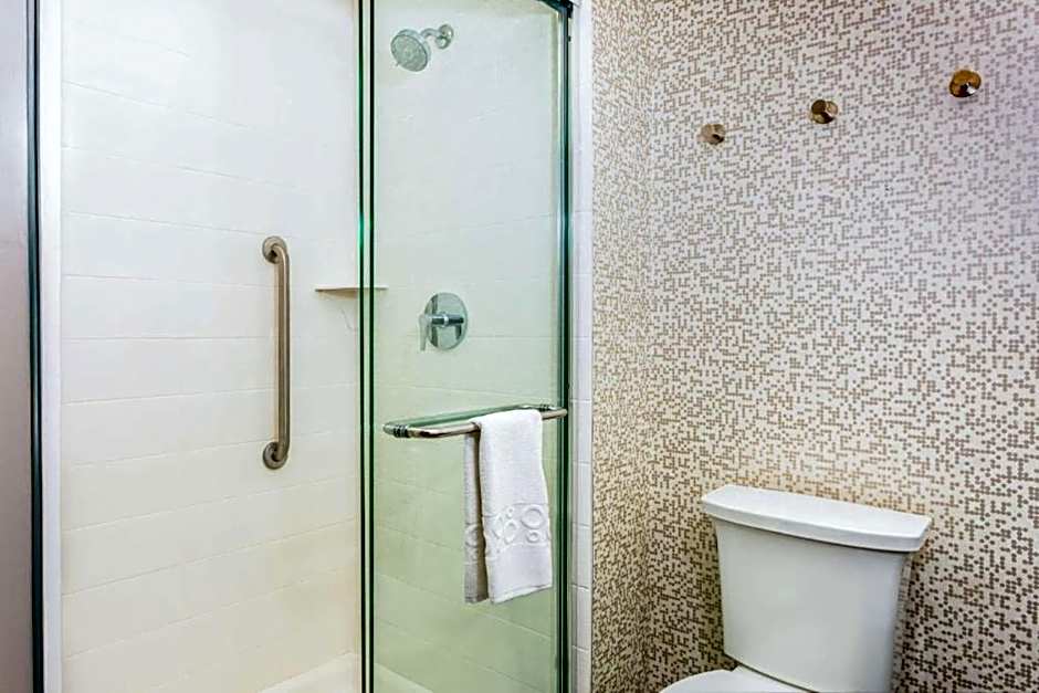 Super clean, modern, spacious, great healthy breakfast choices, comfy beds pillows, fluffy towels, private blinds, good size TV, nice to have fridge in room and ice machine on same level, dishwasher quiet, microwave great for reheat, wonderful staff and excellent parking.