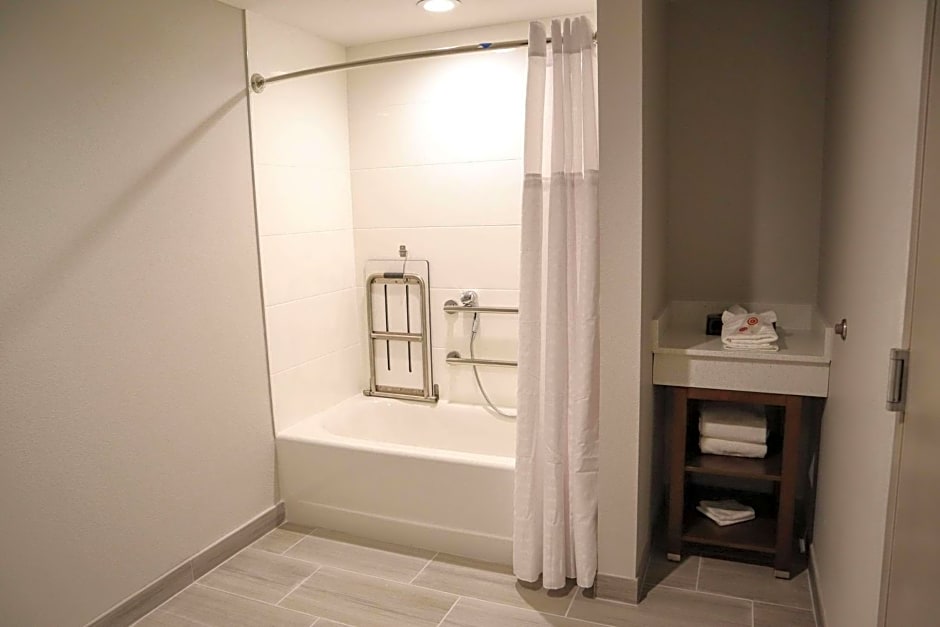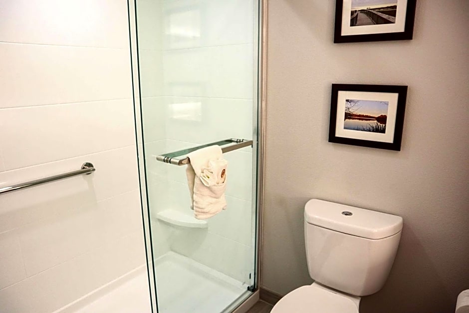Experience the ultimate comfort in our spacious and tastefully designed King Suite with a roll-in shower. Perfect for 2 adults and 1 child, this accessible and non-smoking suite offers a private entrance, a flat-screen TV, and free toiletries for your convenience.
