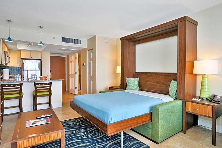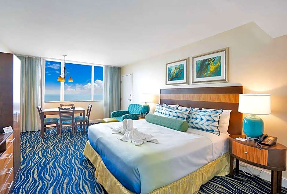The Hollywood Beach Tower offers a variety of rooms including Standard Rooms with 1 King Bed and either an Intracoastal/Inside View or an Ocean View. Additionally, there is a Studio Apartment available for single occupancy. These rooms range in size from 377 sqft to 398 sqft and can accommodate 2 adults and 1 child. Smoking is not allowed in any of the rooms. The bed sizes vary, with options including Twin, Double, Queen, and King beds.
