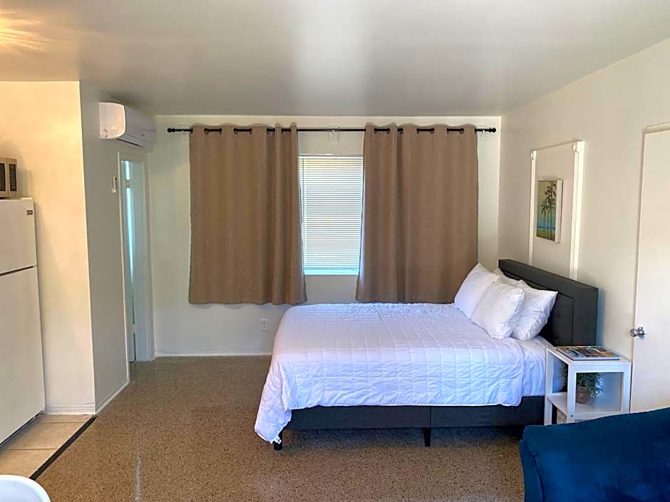 Fantastic location near Broadway, beach, Marriott hotel and activites. Great value impressive motel with Comfortable beds and clean linen. Nice TV. 2 Beach chairs and towels included. Old fashioned Florida motel, upgraded and clean. Hot showers, soap and toileties and nice towels included. Lock box to get in. No inroom safe but there is a dead bolt. Feels safe. To enter, they send you a lock box code thru email the day you arrive. Lock boxes are bymain.office door. Beach is warm, clean, safe with a lifeguard and a rinse area. Police patrols often. Can rent bikes and go to listen to music at the band shell 7 to 9 pm Wednesday to Sunday. Neaby Local bar live entertainment. Motel is quiet and Kid friendly. Ground floor motel. 1 step to get in . Easy to cook on site as it has appliances, oven, good sized fridge. Comes with nespresso machine, coffee machine which are nice touches. Well thought management and care put into this gem. A good vibe place.