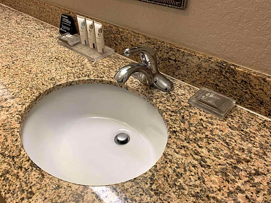 The woman who checked us in at night was extremely nice and helpful. The room was clean and quiet, the bed was comfortable, and the shower pressure was by far the best I have ever experienced at a hotel. Not very far from great Steak house and a short drive to anywhere else.