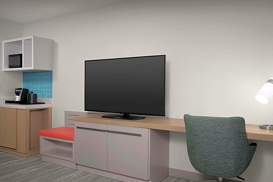 This suite features a living area, microwave, small refrigerator, and flat-screen TV.