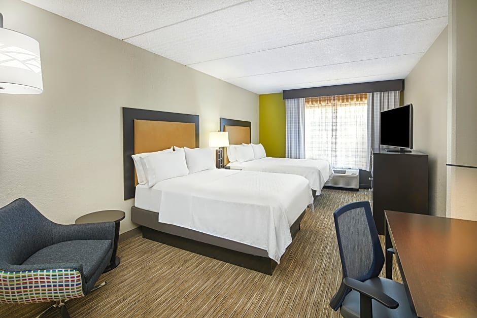 The Holiday Inn Express & Suites Jacksonville South East - Medical Center Area offers a variety of room types including Queen Rooms with Two Queen Beds, King Rooms with Sofa Beds, King Suites, Deluxe Suites with Spa Baths, King Rooms with Disability Access, Standard Rooms with Double or Single Beds, and Executive Suites. The rooms range in size from 323 sqft. All rooms are non-smoking. The accommodations can vary, with some rooms able to accommodate up to 4 adults and 3 children, while others can accommodate 2 adults and 1 child. The bed sizes include Queen size, King size, Twin bed, and Double bed.