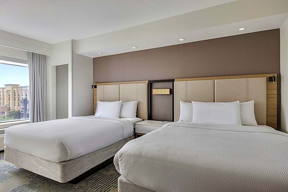 The hotel offers Queen Studios and King Studios, both with sofa beds. The Queen Studios have 2 queen size beds and can accommodate 5 adults and 4 children. The King Studios have 1 king size bed and can accommodate 3 adults and 2 children. All rooms have a size of either 431 sqft or 560 sqft and smoking is not allowed. Some rooms are also adapted for mobility and hearing accessibility, featuring adapted tubs.