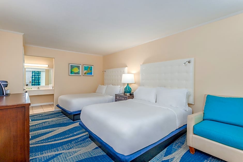 The Holiday Inn Key Largo offers a variety of room options. The rooms include Queen Rooms with Two Queen Beds, King Rooms with Pool View, King Rooms with Marina View, Standard Rooms, and Double Rooms with Two Double Beds. All rooms are non-smoking and have a size of 355 sqft. The rooms can accommodate between 2 to 4 adults and 1 to 3 children, and have either Queen or King size beds.