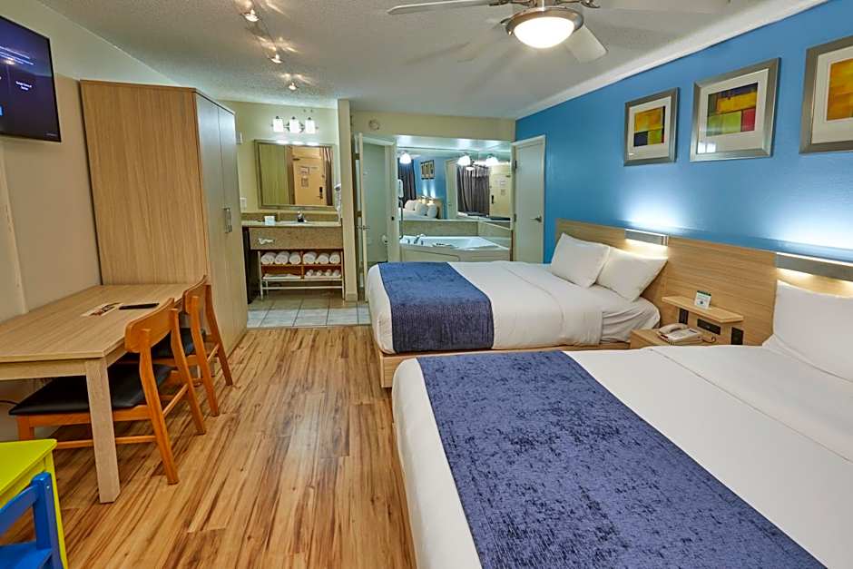 This room features a microwave, small refrigerator, and water park view. A cable TV is also included.