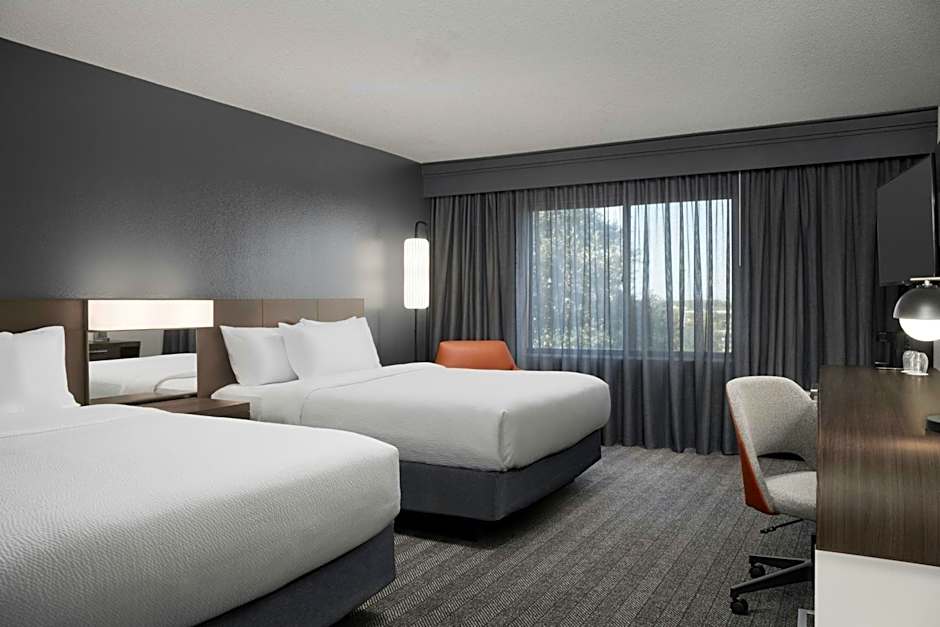 At the Courtyard by Marriott Lakeland, the hotel offers Queen Rooms with Two Queen Beds, both with and without an adapted tub. There are also King Rooms with a Sofa Bed, both with and without hearing accessibility. All rooms are non-smoking and have a room size of 377 sqft. The Queen Rooms accommodate 4 adults and 3 children, while the King Rooms accommodate 3 adults and 2 children. The Queen Rooms have 2 Queen size beds, while the King Rooms have 1 King size bed and 1 Sofa Bed.