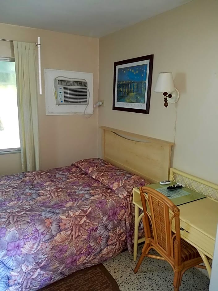 Jen and everyone we encountered at the siesta motel were great! Super happy pleasant and responsive! There's a cute little courtyard area with a picnic table and BBQ. Lots of iguana, little curly tail, gecko lizards. Hermit crabs!!! And wild chickens in the lot There was a dunkin donuts across the street. Super appealing to us since a coffee should be 24oz and not 8 like a Keurig or standard hotel coffee size. 😍😍 Showers were RAVED about our entire group. Great water pressure and almost just a mist at the same time. A/C worked overtime. Lol. Full-sized fridge and a microwave in room. Tons of food options nearby, and a Walgreens 2 mins one way, Publix 2 mins the other direction.