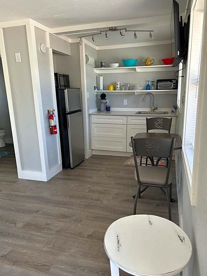 The room is bright and clean. There is a kitchenette to cook meals. However we only used the coffee maker in the morning. Allowing dogs is a plus.
