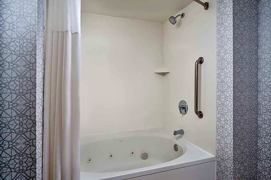 This mobility accessible, non-smoking room features one king-sized bed, and an accessible roll-in shower. The room features comfortable soft seating, microwave, refrigerator, a HDTV, and easy to operate alarm clock/radio. Free high-speed internet access will help you stay connected while on the road. If you prefer not to work at the desk, you can use the convenient lapdesk instead. You'll also enjoy the convenience of having a coffeemaker with tea service and iron/ironing board in your room. Any corresponding photo may not reflect the specific accessible room type or room feature.