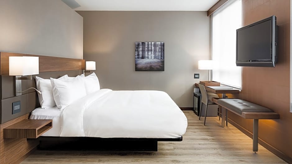 The AC Hotel by Marriott Miami Airport West/Doral offers various room types including double rooms with 1 King bed and a sofa bed, double rooms with 2 Queen beds, and double rooms with a King bed that are both hearing accessible and mobility accessible with a roll-in shower. All rooms do not allow smoking and have a room size of 312 sqft, except for the double room with 2 Queen beds which has a room size of 334 sqft. The rooms accommodate either 2 adults and 1 child or 4 adults and 3 children, depending on the room type.