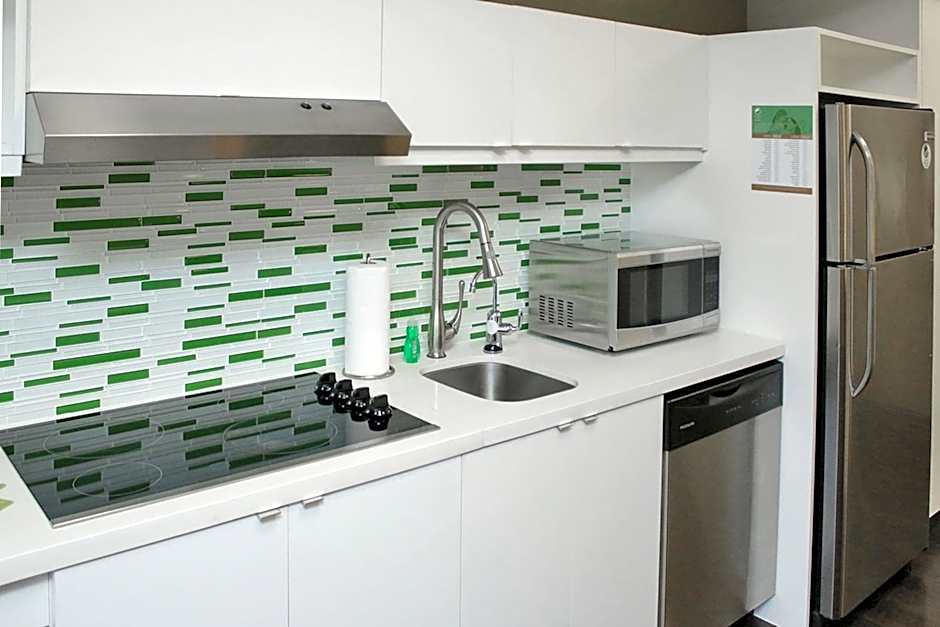 The hotel offers a variety of room types including Executive King Suites, King Studio Rooms, Two Queen Studio Rooms, One-Bedroom King Suites, and King Guest Rooms. All rooms are non-smoking and have different sizes ranging from 312 sqft to 527 sqft. The rooms accommodate either 2 adults and 1 child or up to 4 adults and 3 children. The beds in the rooms are either King size or Queen size.
