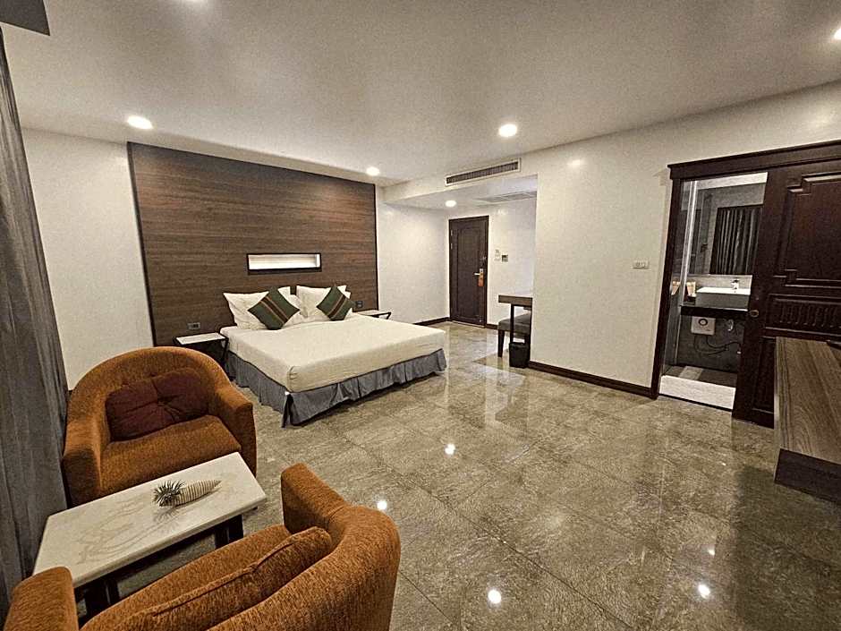 Featuring free toiletries and bathrobes, this suite includes a private bathroom with a shower, a hairdryer and slippers. This suite is air-conditioned and has a seating area with a flat-screen TV, a tea and coffee maker, a wardrobe, tumble dryer, as well as a sofa. The unit has 1 bed.