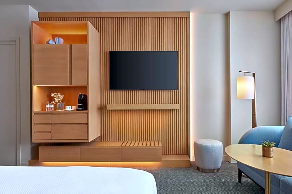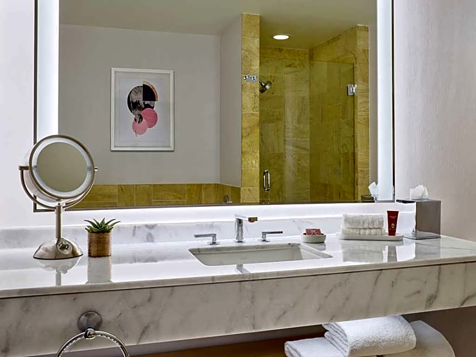 Newly renovated Hearing Accessible Deluxe room features one king-sized bed. The room also has a visual alarm and notification devices for the doorbell or door knock and incoming telephone calls. Our Deluxe king-sized bed room is equipped with 55" Samsung smart TV, Nespresso machine and features views of the Miami skyline and offers all the comforts and amenities required for the ultimate luxurious night's sleep. Pamper yourself in the marble bathrooms with our indulgent bath products, and stay connected with a host of high-tech in-room amenities. Any corresponding photo may not reflect the specific accessible room type or room feature.