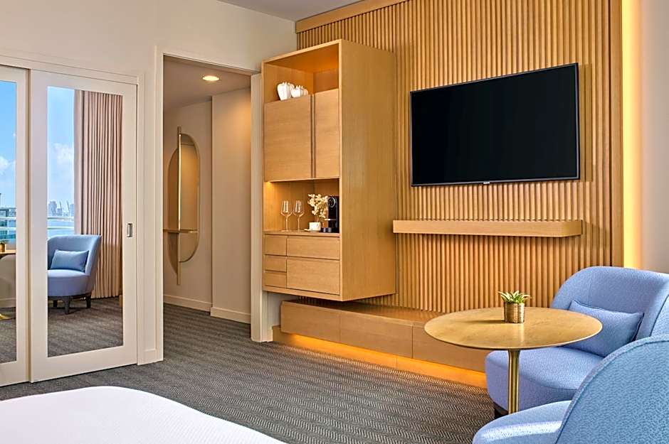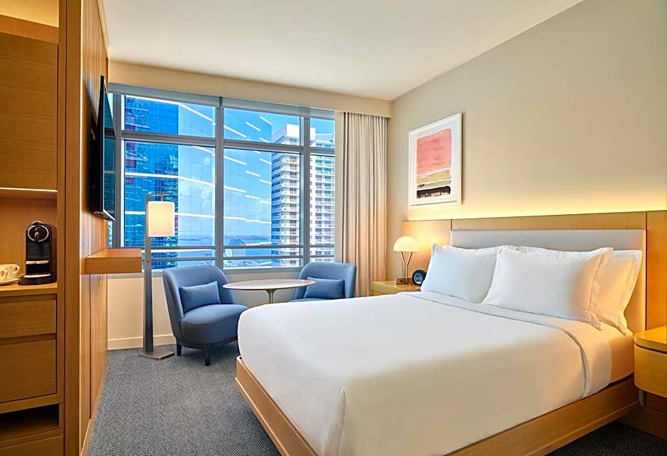 This room features views of the Miami skyline, a flat-screen TV, and an en suite espresso machine.