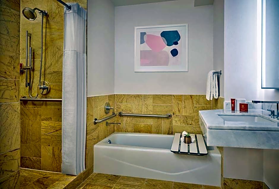 Newly Renovated Mobility Accessible Premium room features one king-sized bed and an accessible bathtub and is equipped with 55" Samsung Smart TV, Nespresso machine and features all the amenities of our deluxe rooms with the addition of stunning views of City of Miami. Immerse yourself in the breathtaking vistas afforded by the large windows. And why not rise early for a special treat and watch the sun inching over the horizon of the Atlantic Ocean. Any corresponding photo may not reflect the specific accessible room type or room feature.
