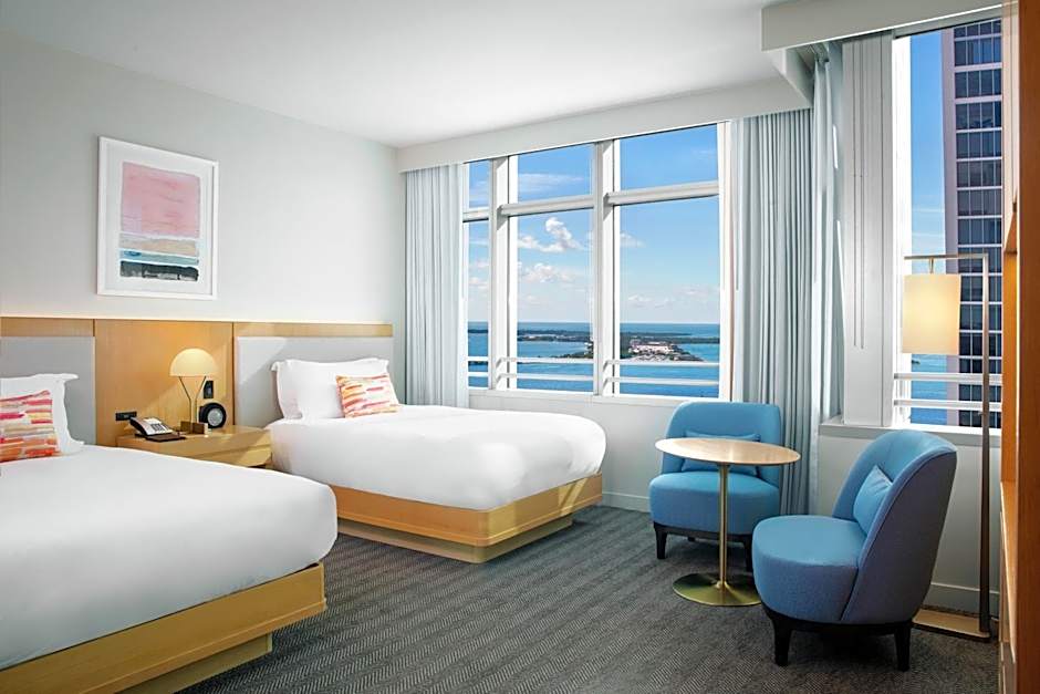 Newly Renovated and spacious, sophisticated bay view double rooms are equipped with 55" Samsung Smart TV, Nespresso machines, mini bar, luxury bedding and deluxe bath amenities to ensure an inspiring stay close to the best of Miami. Indulge yourself with a peaceful nights' sleep on refined cloud-like beds and unwind in our expansive contemporary bathrooms with separate deep soaking bathtub, shower and selection of luxurious bath products. Our genuine and attentive staff offers unmatched service to ensure the perfect stay in downtown Miami.