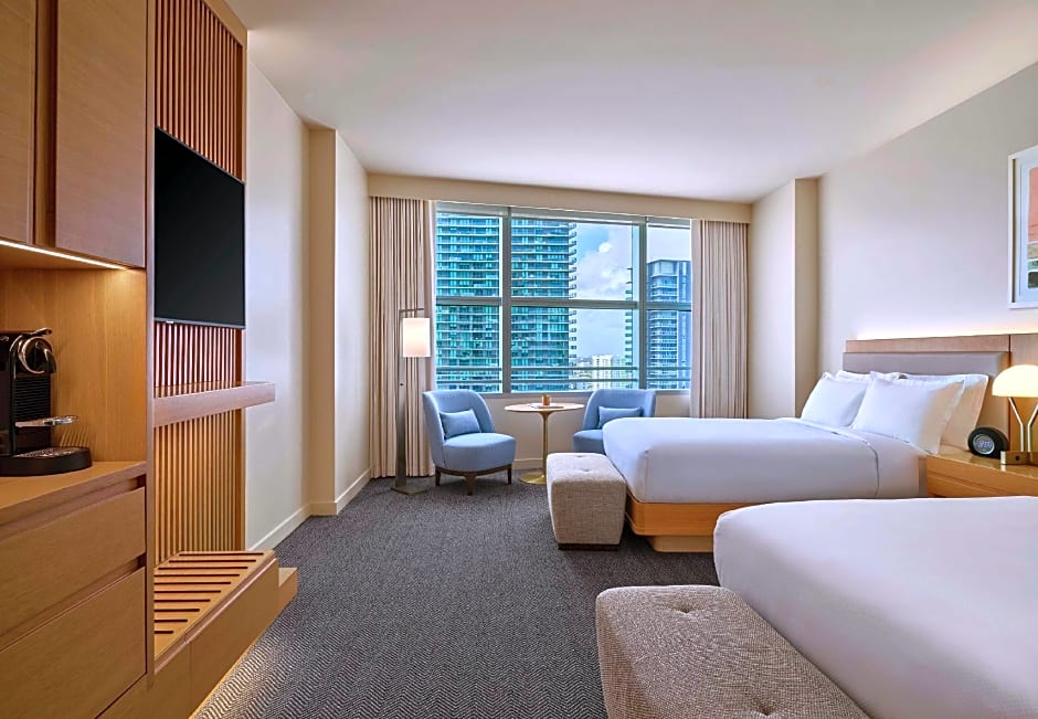 Newly Renovated City View Queen rooms are equipped with 55" Samsung Smart TV, Nespresso machines, mini bar, luxury bedding and deluxe bath amenities to ensure an inspiring stay close to the best of Miami. Indulge yourself with a peaceful nights' sleep on refined cloud-like beds and unwind in our expansive contemporary bathrooms with separate deep soaking bathtub, shower and selection of luxurious bath products. Our genuine and attentive staff offers unmatched service to ensure the perfect stay in downtown Miami.