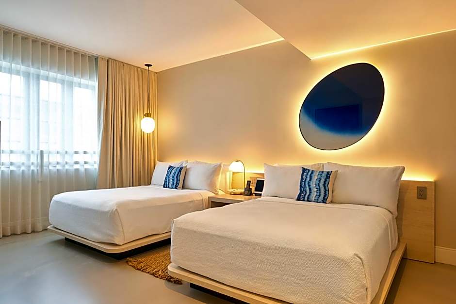 Located in the historic Collins Avenue building, this Accessible Double Double accommodations surrounds guests in a modern, layered interpretation of Miami Beach luxury. Featuring two full beds and a range of bath configurations, inquire with our front desk to learn more about the best option for your reservation.