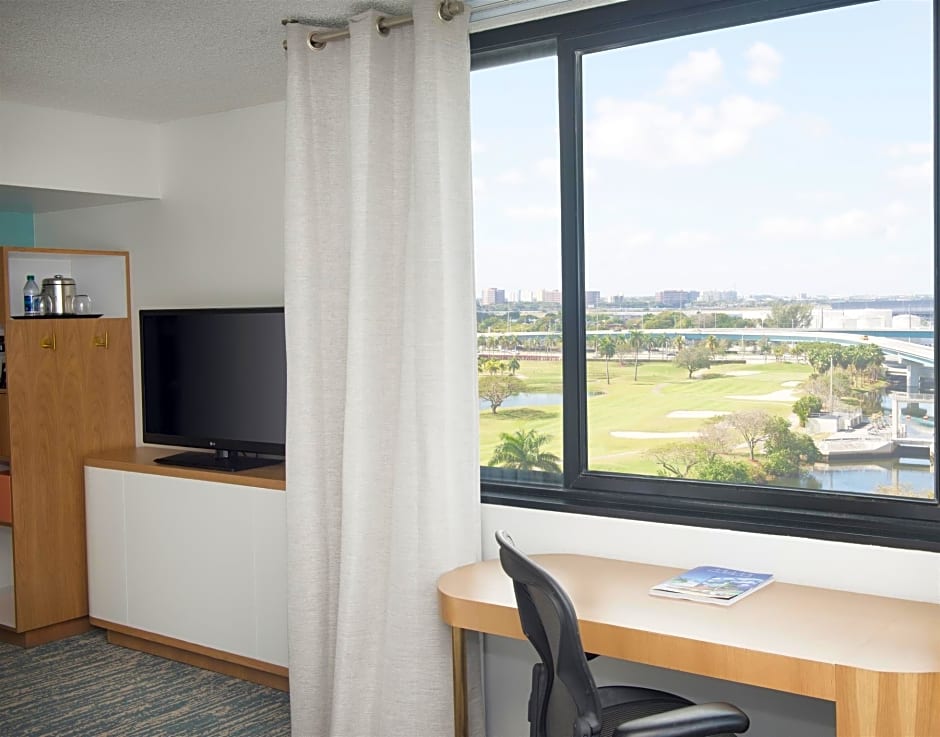 An outstanding one-night stay. All staff were extremely friendly. I had an upgrade to the club floor, which allowed for great snacks and a good breakfast. The room was very spacious and comfortable, quite nicely updated. I also arrived on a Thursday, when they had a lobby reception with complimentary cocktails. Staff at the pleasant restaurant and bar were also great. And the location near the airport was extremely convenient: not only do they operate a free, frequent shuttle from the terminal, but the hotel is also just across the street from the MIA Mover and Metro station. For someone flying in and out of Miami, it's hard to image a better option.