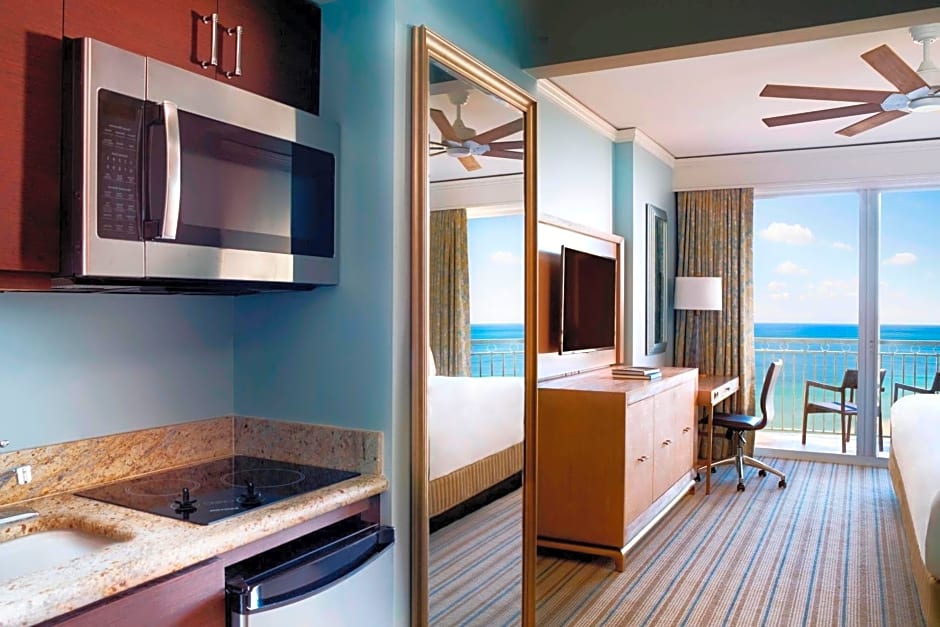 Club Ocean Front Suite, 1 King, Sofa bed, Bathrooms: 1.5, Mini fridge, 800sqft/72sqm, Living/sitting area, Separate living room, Wireless internet, complimentary, Wired internet, complimentary, Coffee/tea maker, 42in/42 in flatscreen TV. Club Lounge Access includes Open: Sun-Sat, Open: 7:00-22:00 Private access floor Complimentary food: - Continental Breakfast Complimentary nonalcoholic beverages Business services, for a fee Complimentary Internet Access Continental breakfast followed by continuous light culinary offerings served throughout the day and into the evening. Additional person charge applies for over 2 guests per room