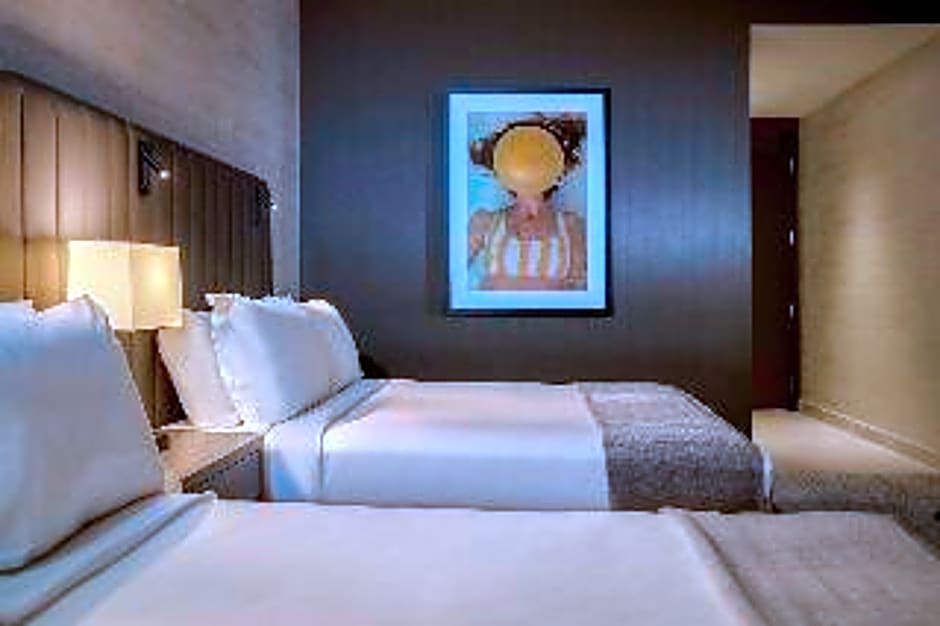 THesis Double Queen Waterway view is 398 square feet and includes 2 queen-size beds 150-154 width.