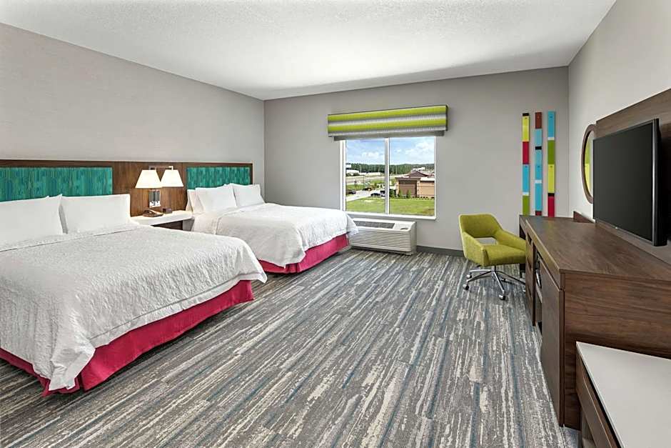 The available rooms at Hampton Inn Odessa Trinity include Queen Rooms with Two Queen Beds (hearing accessible, non-smoking), King Rooms (non-smoking), King Suites (hearing accessible, non-smoking), Queen Rooms with Two Queen Beds (non-smoking), Queen Rooms with Two Queen Beds (mobility accessible, non-smoking), King Rooms (hearing accessible, non-smoking), and One-Bedroom King Suites (non-smoking). The rooms are quadruple or double occupancy, with bed sizes ranging from Queen to King. Smoking is not allowed in any of the rooms.