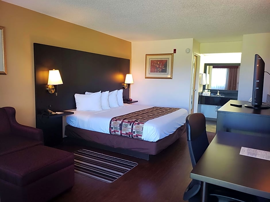 Located on an upper floor, this guestroom features a microwave, small refrigerator, and cable flat-screen TV.